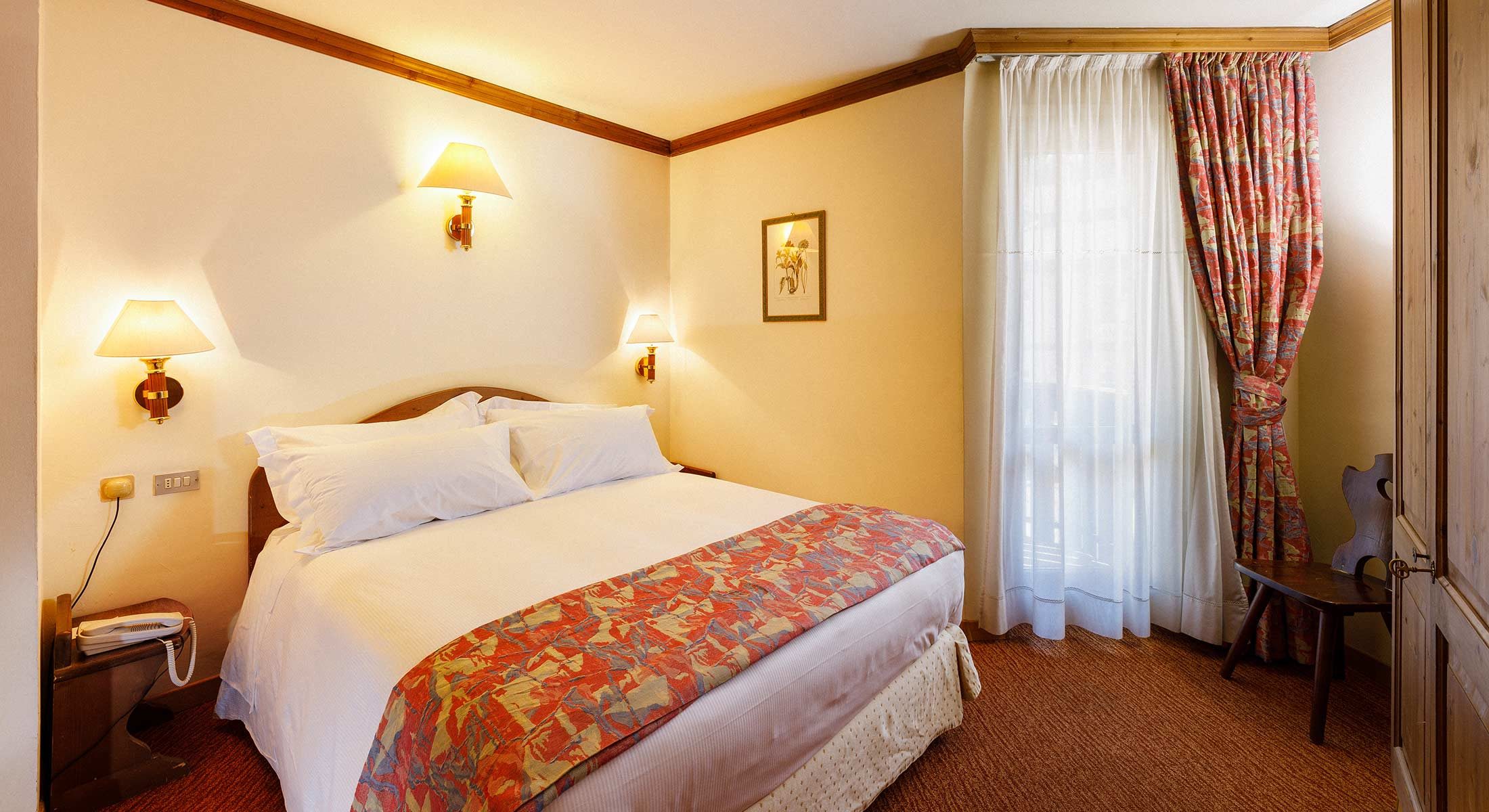 Réparties sur sept étages, les 92 chambres de l’hôtel Alaska offrent une vue splendide sur les Dolomites. Les intérieurs reflètent le style typique de la montagne : meubles en bois, tons chauds, extrêmement confortables et accueillants.